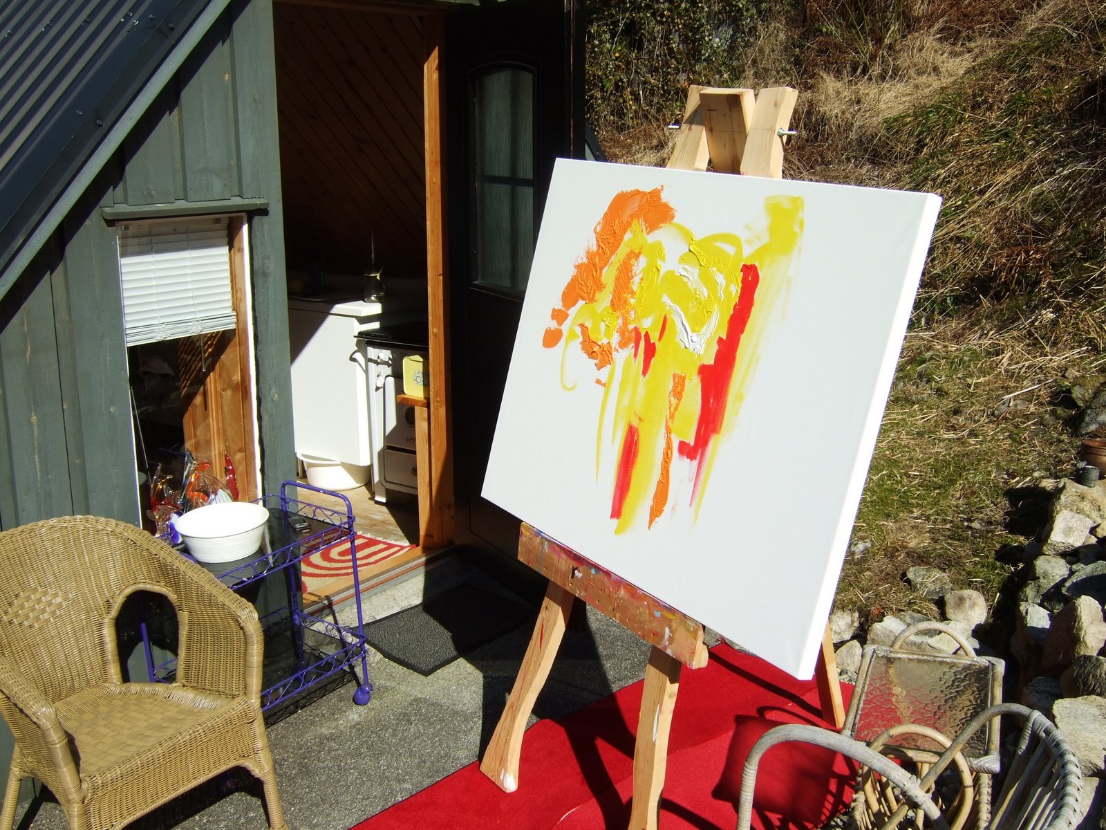 Det henger alltid et maleri ved inngangsdøren som ønsker venner og familie velkommen.